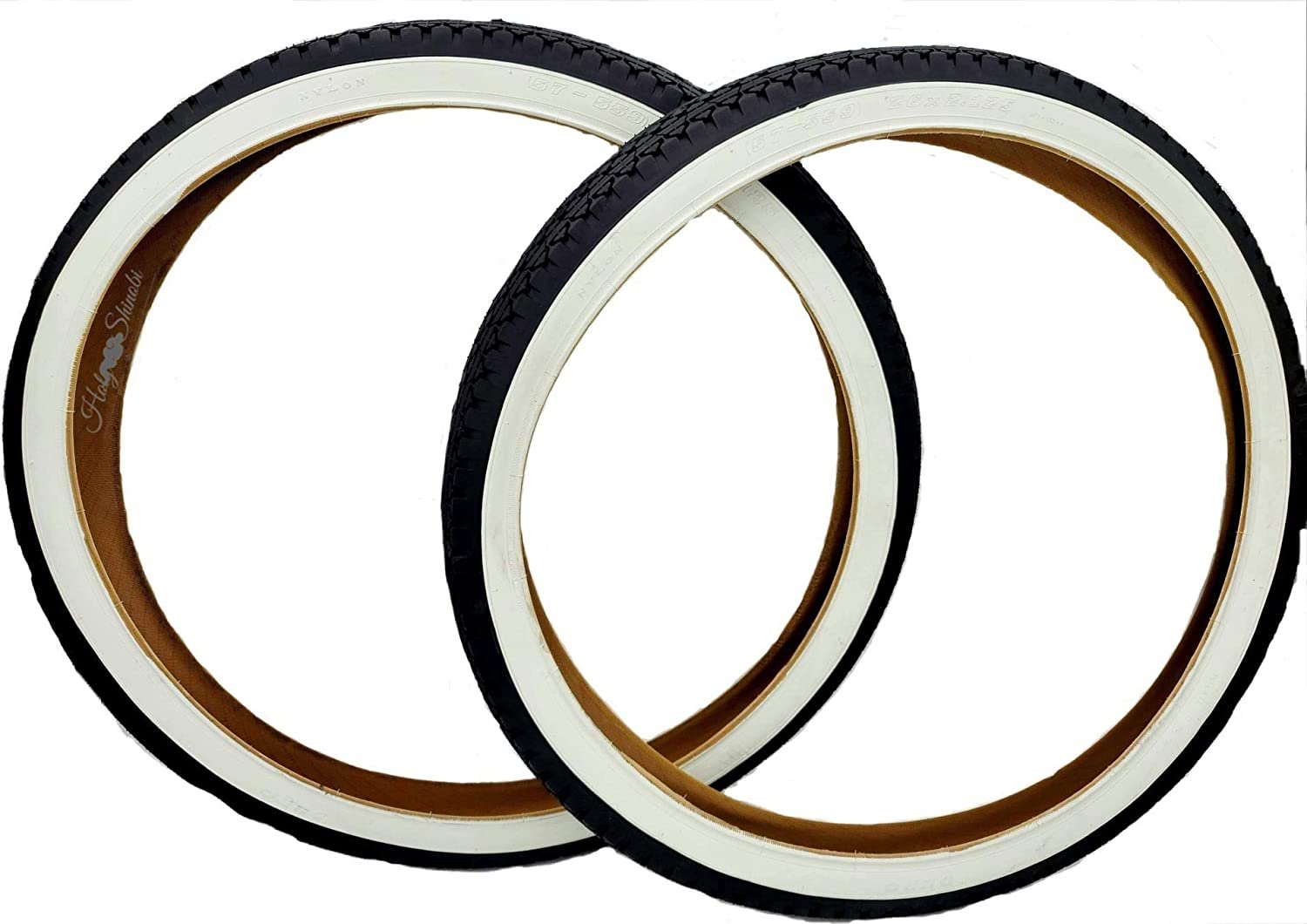 26 Inch Bike Tires, Beach Cruiser, Durable Wire Bead Tires White Sidewall, Whitewall 26 x 2.125 Replacement Bike Tire Bundle Kit, 26 in. Inner Tube, 26 in. PVC Rim Liner, and Set of Levers