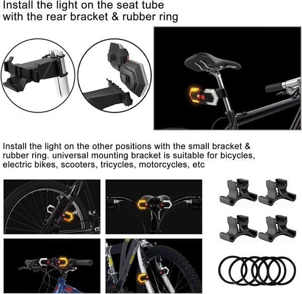 BACKTOUR Bike Tail Light with Turn Signals, USB Rechargeable Bike Turn Signals Front and Back, Wireless Remote Control Bicycle Turn Signals for Bicycles, Electric Bikes, Scooters, Motorcycles