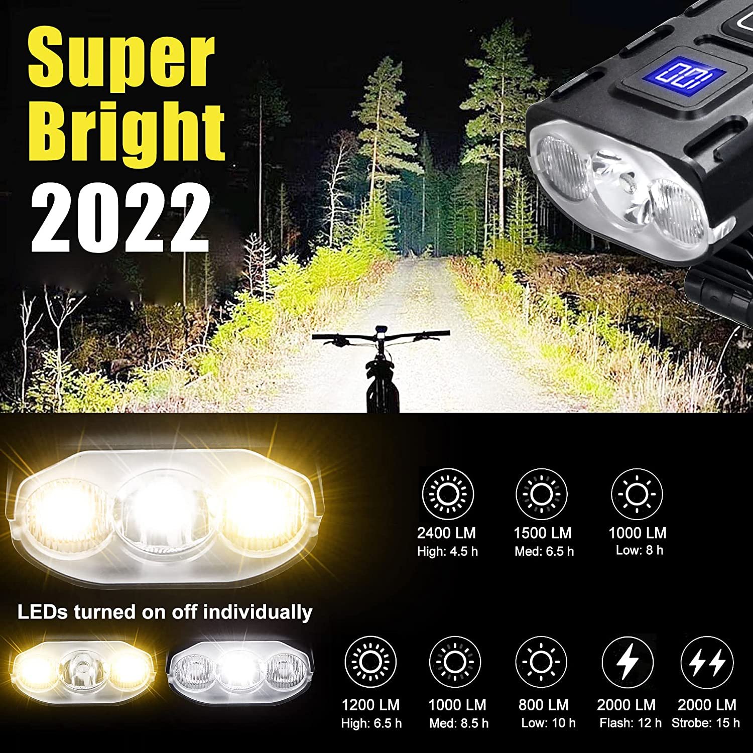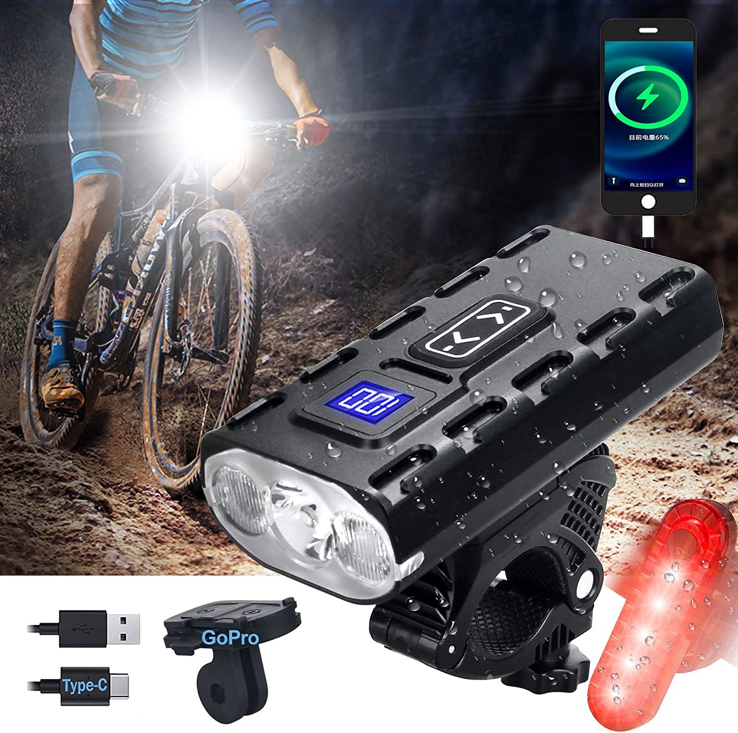 Best Bike Lights for Night Riding 2022 Most Powerful Mountain Bike Light 8000 Rechargeable Bicycle Lights Front Rear MTB Light Enduro Trail Riding Brightest Headlight Off-Road Cycling Commuting
