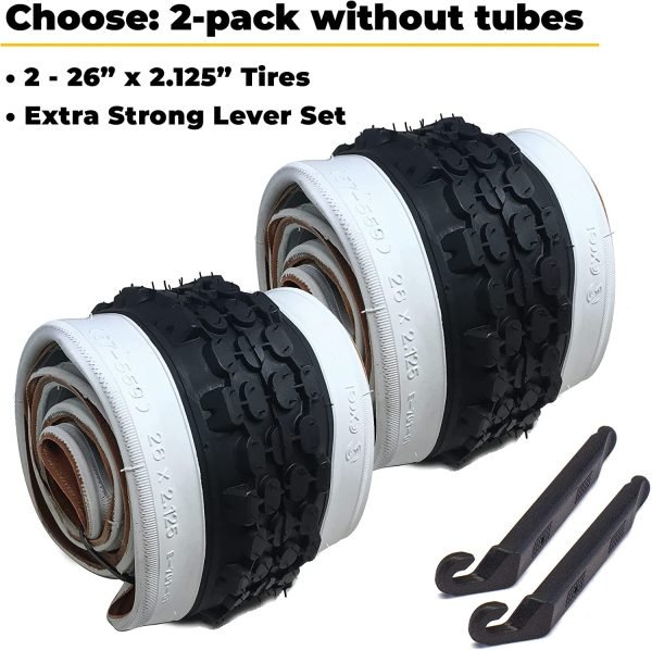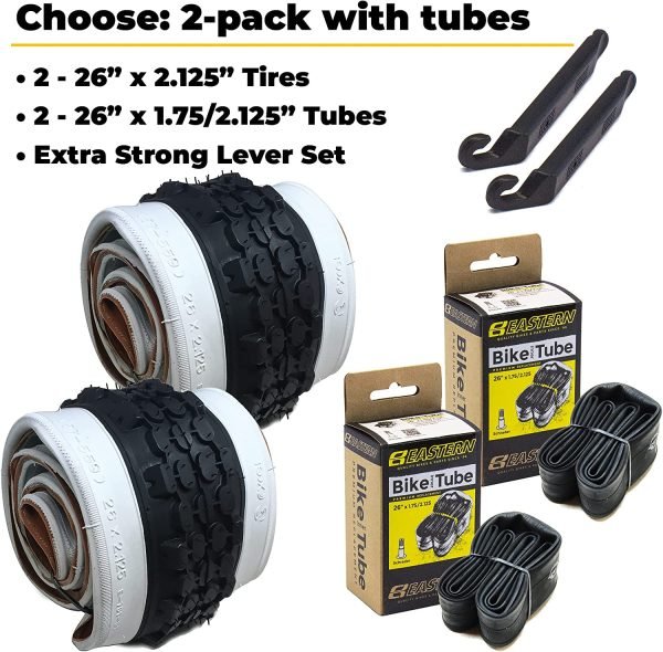 Classic White Wall Tires for Your Cruiser Wheels and Beach Cruiser Bike Accessories. 26 x 2.125 White Wall Bicycle Tires. with or Without Tubes. 1 or 2 Pack.