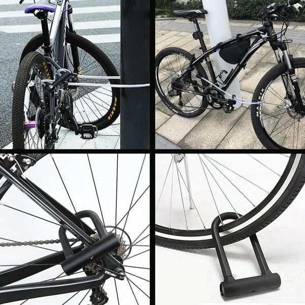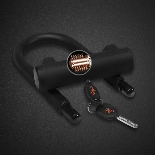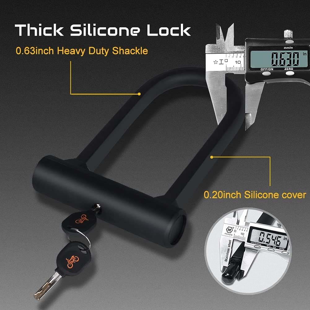 - DURABLE DESIGN: This Anti-Theft bike lock features a 12mm hardened steel shackle with a bent foot anti-rotation design that resists bolt cutters and twisting leverage attacks. The lock disc-style cylinder side keyway is protected by a sliding dust cover and is pick and drill resistant