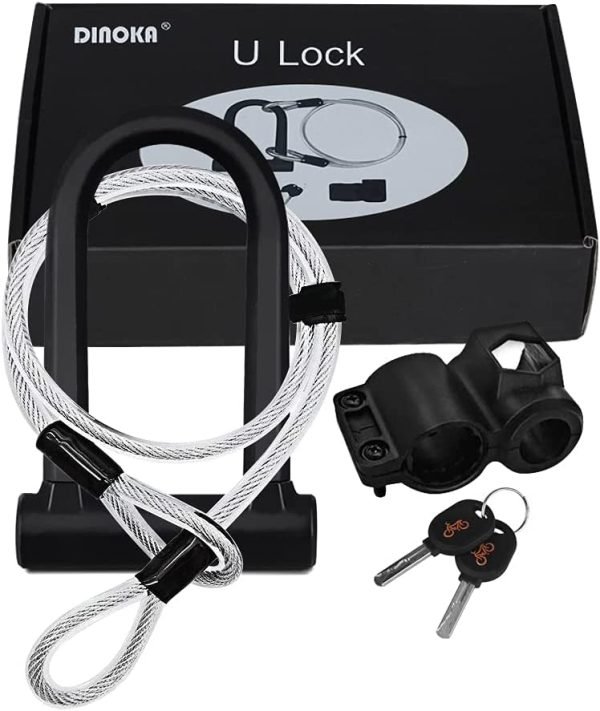 DINOKA Bike U Lock – 16mm Heavy Duty Security U Cable Bike Lock with 4ft Flex Bike Cable and Sturdy Mounting Bracket for Road Bike Mountain Bike Electric Bike Folding Bike