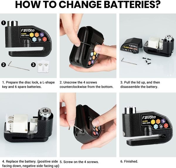 - 【Durable for Long-term Use】- With metal cover and stainless steel inside, it performs well in all weather conditions. The disc lock has 6 batteries installed, and another 6 for spare. A low-battery alarm will be triggered when it is running out of power.