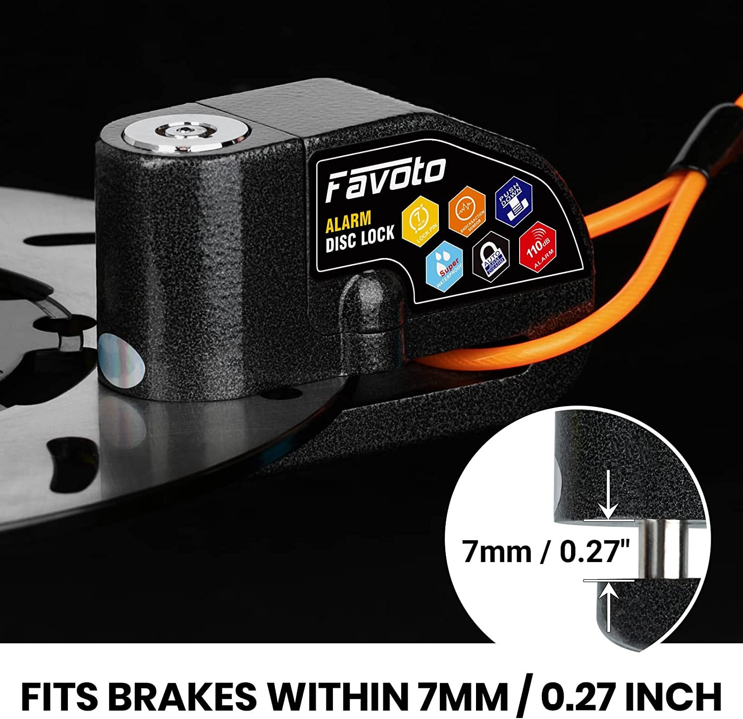 - 【7mm/0.27inch Lock Pin】- The disc lock is suitable for brakes within 7mm / 0.27 inch width. It works not only on bikes, but also on motorcycles, scooters, mopeds etc.