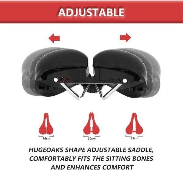 Hugeoaks Width Adjustable Bike Seat, Comfortable Bicycle Seat with Thick Memory Foam, Bike Saddle Suitable for Mountain Bike, Road Bike, City Bike and Stationary Exercise Bike for Men and Women