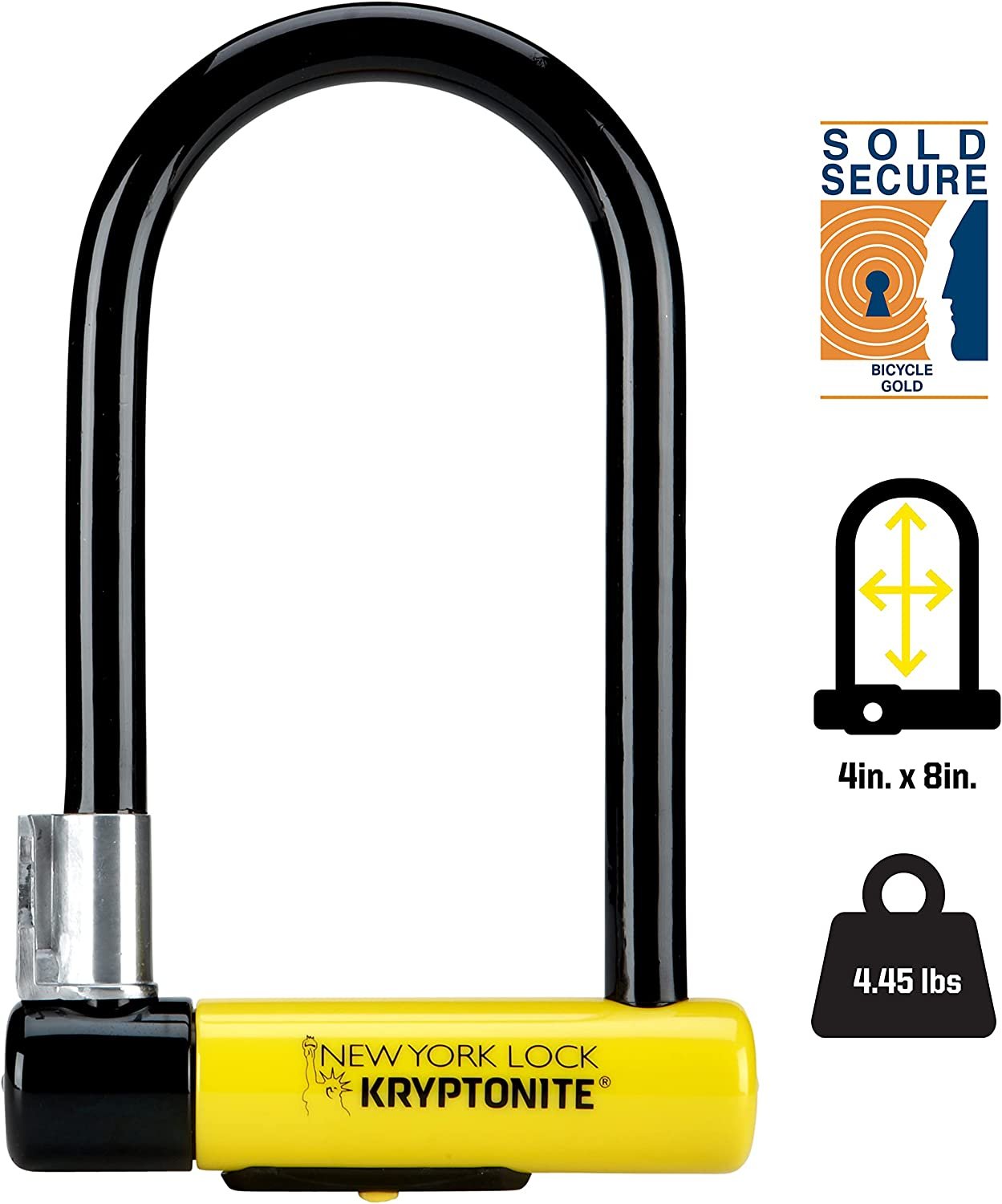 Kryptonite New-U New York Standard Heavy Duty Bicycle U Lock Bike Lock BLACK/YELLOW, 10