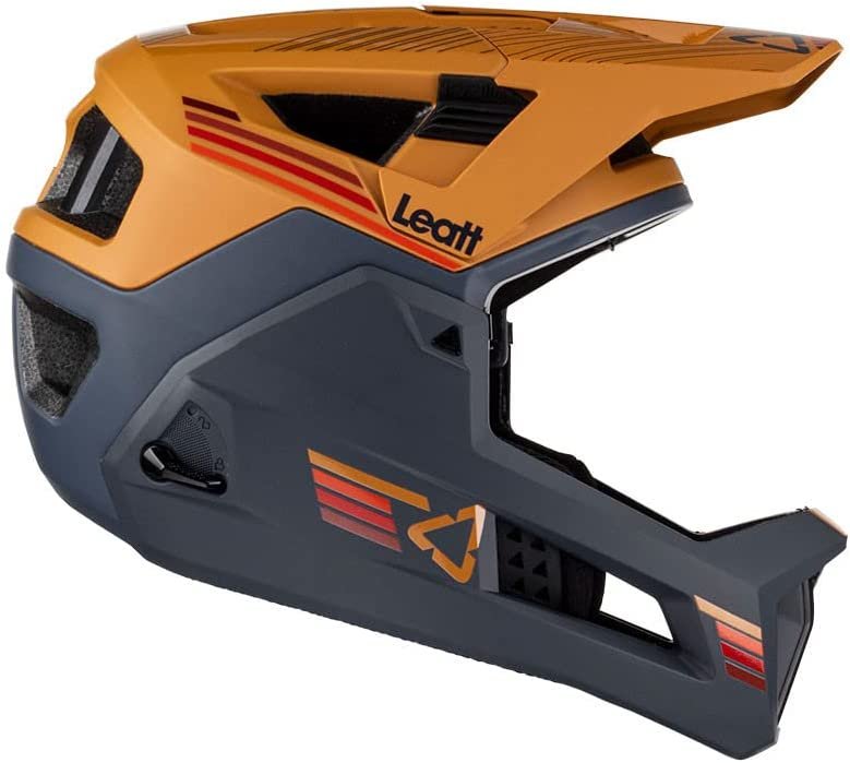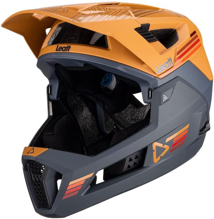 Renowned for its ventilation and comfort, this enduro MTB helmet has been advanced from the much loved 4.0 full face helmet. Packed with unique features there is not another helmet on the market like it! A removable mouthpiece in the chin bar increases ventilation or can be installed to protect you when riding in poor weather conditions. A universal sunglasses dock lets you safely dock your sunglasses under the visor when not in use, protected from scratches and unwanted impacts. The adjustable visor opens up enough to place your goggles underneath, so you don’t have to constantly remove them. This fully ASTM DH certified helmet is the go-to helmet for enduro riders. Uphill or downhill, E-bike or trail – you name it, the Leatt 4.0 Enduro helmet has you covered. The full-face design with removable chin bar with an incredible strong magnesium lock offers outstanding ventilation and its convenient Fidlock buckle makes life just peachy! We all crash. Sometimes hard, and sometimes even harder! Leatt helmets feature 360 degree Turbine Technology reduces rotation acceleration level impact energy to your head ! Do not be afraid to push you limits. DH certified lightweight Polymer shell. Removable chin bar with NEW easy-fit attachment system. Sunglasses dock port for easy, secure storage. Fidlock magnetic closure system. 360degree Turbine Technology. Reduced peak acceleration by up to 30% at impact speeds. Reduces peak rotational acceleration by up to 40%. Maximized ventilation with 18 vents. Optimized for riding and effective even at low speeds. Moisture wicking, breathable, non-odor and washable inner liner. Optimal neck brace compatibility. Adjustable visor with breakaway function for rotational impact force reduction. In-molded EPS + EP0 impact foam for superior energy absorption. Certified and tested: AS/NZS 2063:2008, ASTM F1952-10, EN1078, CPSC 1203.