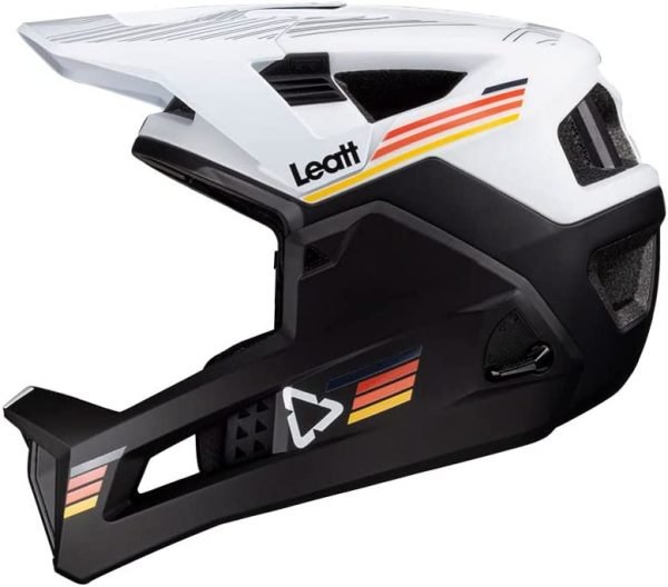 Renowned for its ventilation and comfort, this enduro MTB helmet has been advanced from the much loved 4.0 full face helmet. Packed with unique features there is not another helmet on the market like it! A removable mouthpiece in the chin bar increases ventilation or can be installed to protect you when riding in poor weather conditions. A universal sunglasses dock lets you safely dock your sunglasses under the visor when not in use, protected from scratches and unwanted impacts. The adjustable visor opens up enough to place your goggles underneath, so you don’t have to constantly remove them. This fully ASTM DH certified helmet is the go-to helmet for enduro riders. Uphill or downhill, E-bike or trail – you name it, the Leatt 4.0 Enduro helmet has you covered. The full-face design with removable chin bar with an incredible strong magnesium lock offers outstanding ventilation and its convenient Fidlock buckle makes life just peachy! We all crash. Sometimes hard, and sometimes even harder! Leatt helmets feature 360 degree Turbine Technology reduces rotation acceleration level impact energy to your head ! Do not be afraid to push you limits. DH certified lightweight Polymer shell. Removable chin bar with NEW easy-fit attachment system. Sunglasses dock port for easy, secure storage. Fidlock magnetic closure system. 360degree Turbine Technology. Reduced peak acceleration by up to 30% at impact speeds. Reduces peak rotational acceleration by up to 40%. Maximized ventilation with 18 vents. Optimized for riding and effective even at low speeds. Moisture wicking, breathable, non-odor and washable inner liner. Optimal neck brace compatibility. Adjustable visor with breakaway function for rotational impact force reduction. In-molded EPS + EP0 impact foam for superior energy absorption. Certified and tested: AS/NZS 2063:2008, ASTM F1952-10, EN1078, CPSC 1203.