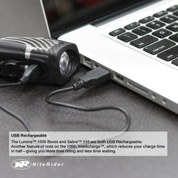 NiteRider Lumina 1000 Boost Front Bike Light Sabre 110 Rear Bike Light Combo Pack- LED USB Rechargeable Bicycle Headlight Water Resistant Mountain Road City Commuting Cycling Safety