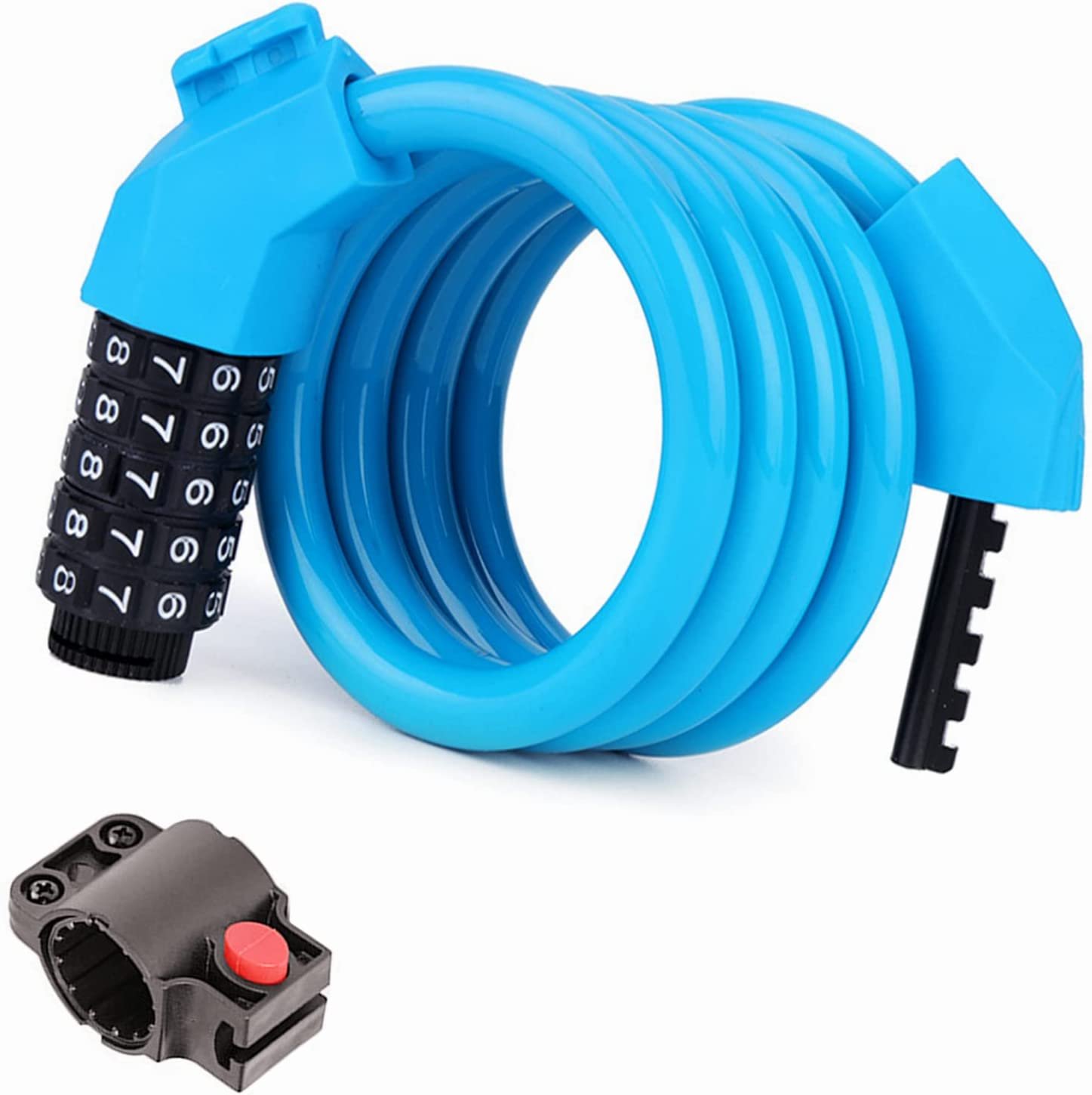 RUNGANG Bike Lock, 4 Feet Bike Lock Cable, High Security 5 Digit Combination Bicycle Lock, Heavy Duty Anti-Theft Cable Lock with Mounting Bracket – Blue