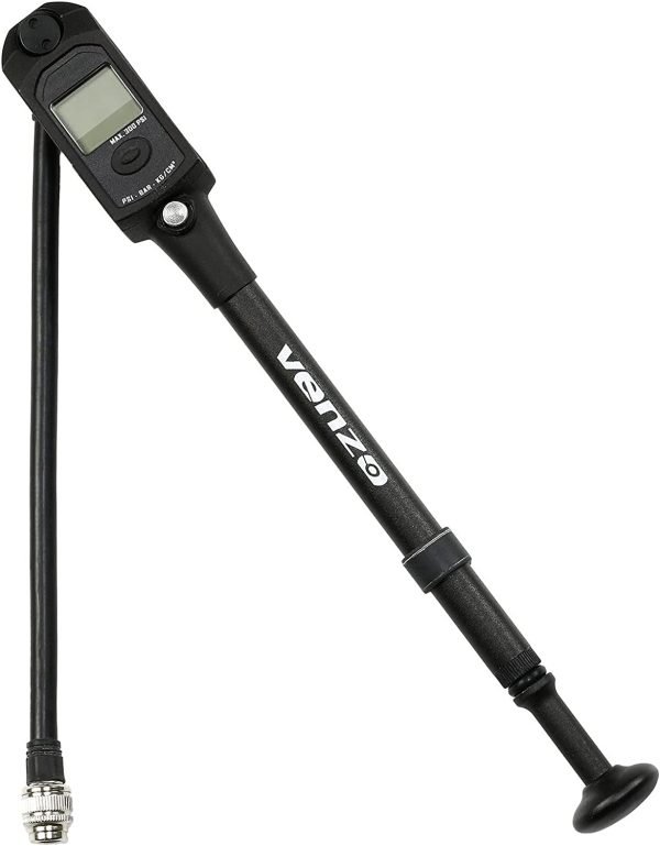Venzo Bike Bicycle High-Pressure Shock Pump 300 PSI Max Fork & Rear Air Suspension with Digital Gauge – Great for Mountain Bike MTB Fork